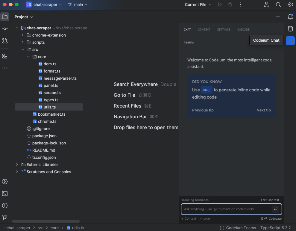 You can also pop the chat window out of the IDE entirely by clicking the page icon at the top of the chat panel.@-Mentions