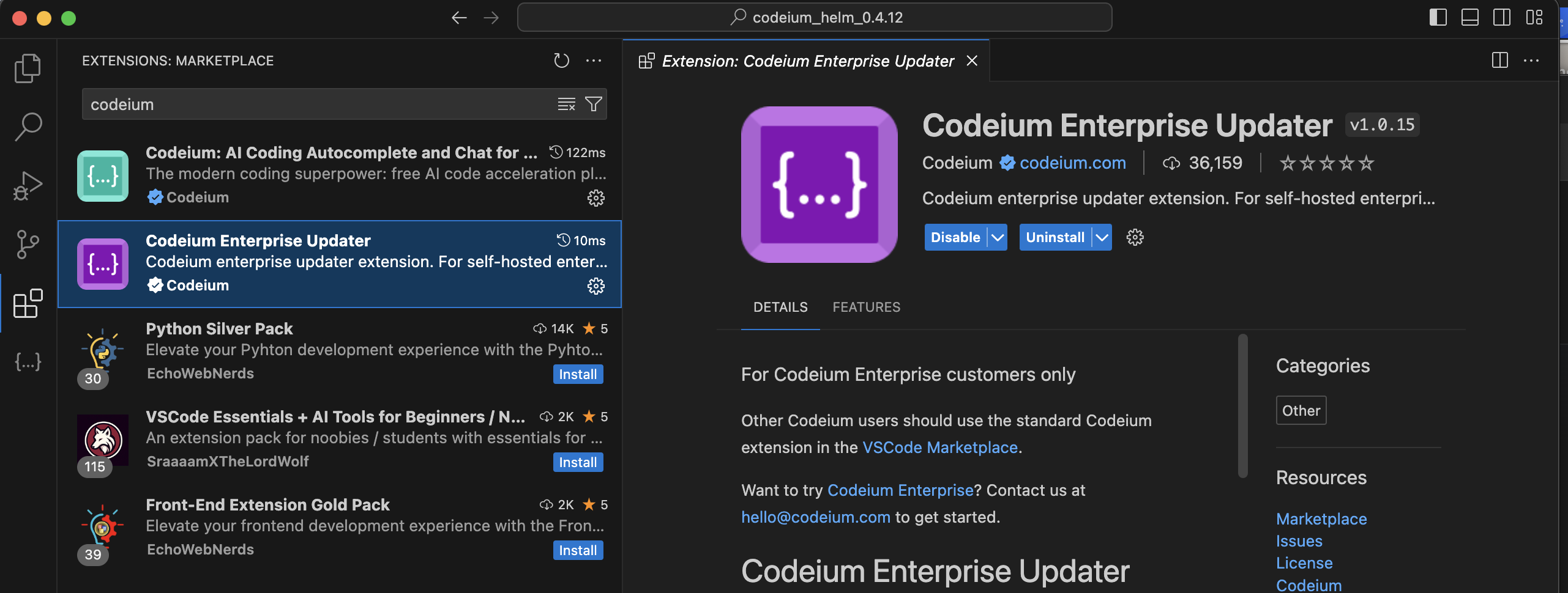 Enterprise updater doesn’t install Codeium extension