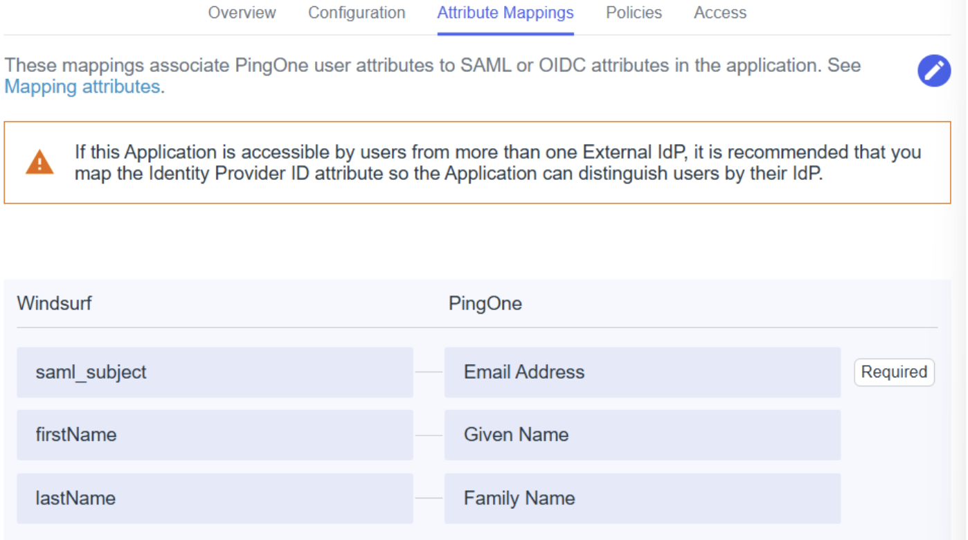 This guide assumes that you have PingID configured and acts as your organizational IDP, or has external IDP configured.You will need administrator access to both PingID and Windsurf accounts.Configure PingID for Windsurf