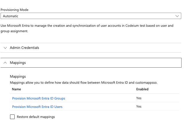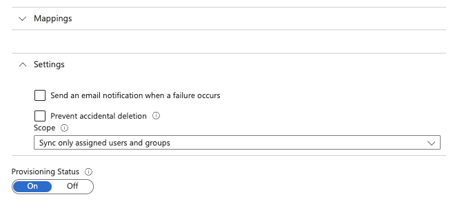 After clicking on Save, a new option Mappings should have appeared in the Provisioning page. Expand Mappings, and click on Provision Microsoft Entra ID Users