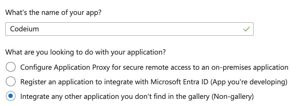 - Name your application Windsurf, select Integrate any other application you don’t find in the gallery, and then click Create.
