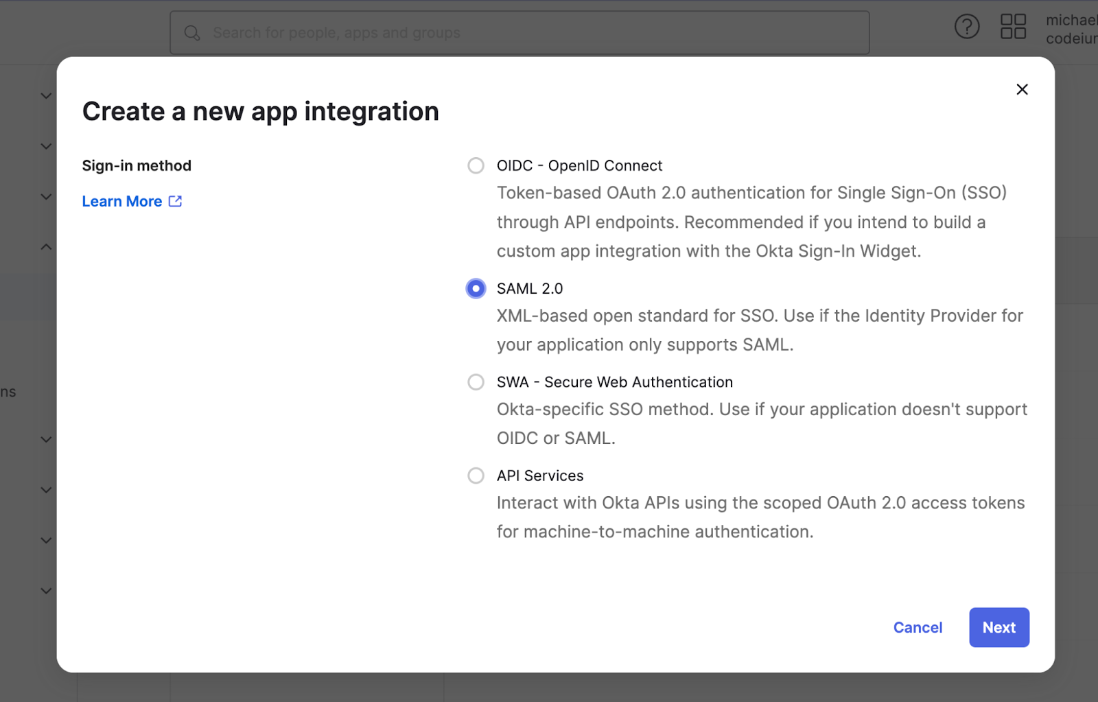 Windsurf supports SCIM synchronization for users and groups with Okta. It isn’t necessary to setup SSO to use SCIM synchronization, but it is highly recommended.You’ll need: