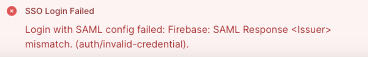 Login with SAML config failed: Firebase: SAML Response <Issuer> mismatch. (auth/invalid-credential)