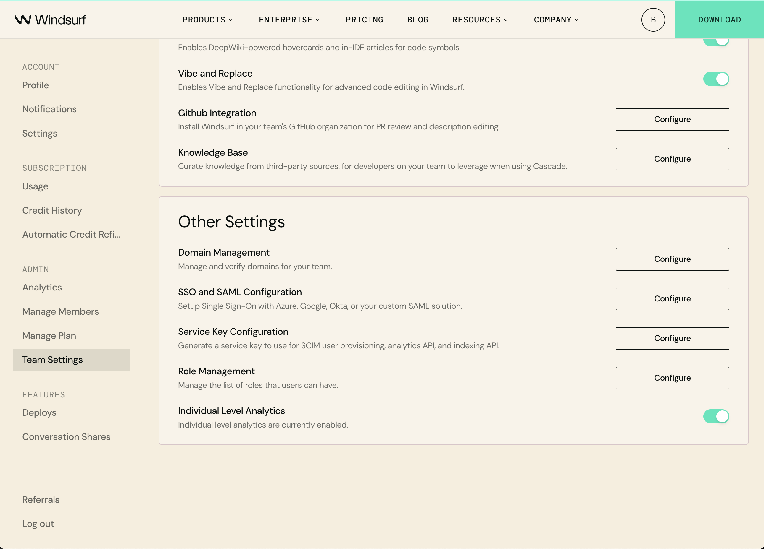 Complete the configuration in the Windsurf portal (https://windsurf.com/team/settings).